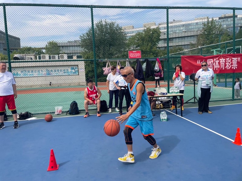 紧接着登场的篮球障碍跑(因报名人数达标顺利开展)同样看点十足。赛场上,S 型、直线型障碍物依次排开,参赛老同志需从起点出发,运球绕过所有障碍抵达终点,用时越短得分越高。随着裁判哨声响起,第一位选手运球出发,只见他双手灵活控制篮球,脚步稳健地绕过一个个障碍,即便中途偶有球脱离控制,也立刻弯腰捡球,从失误处重新出发,全程不见丝毫慌乱。场边观众的加油声此起彼伏:“张老师加油!稳住!”“李大哥快到终点啦!” 老同志们在加油声中越挫越勇,每一次顺利绕障、每一次快速冲刺,都成为赛场上鲜活的 “活力注脚”。