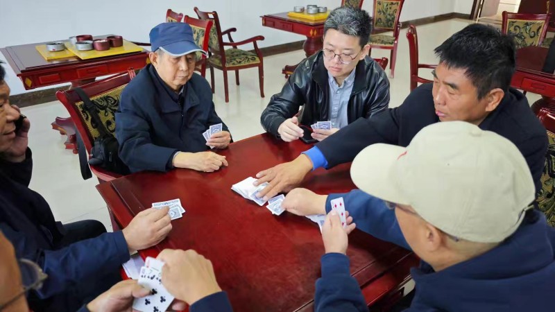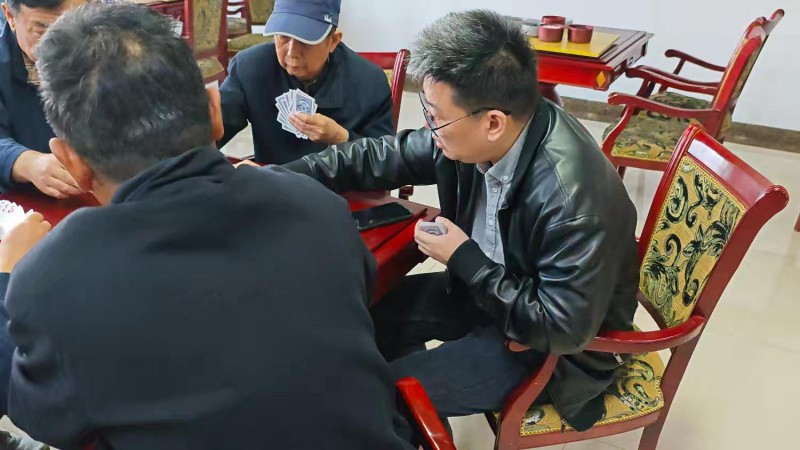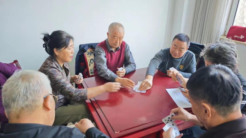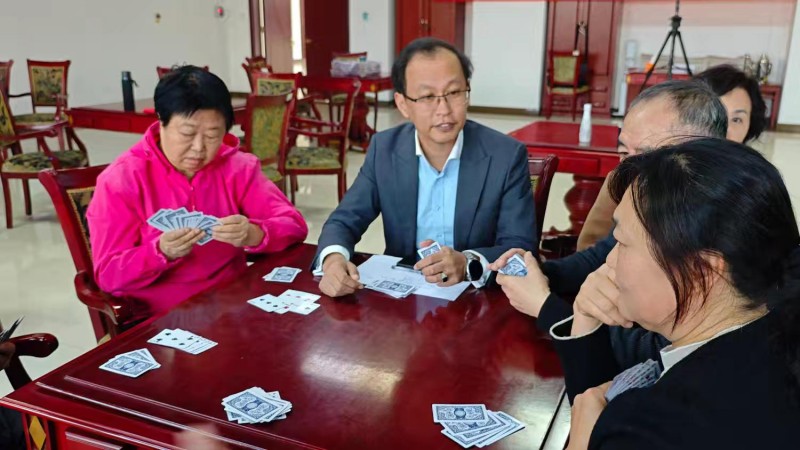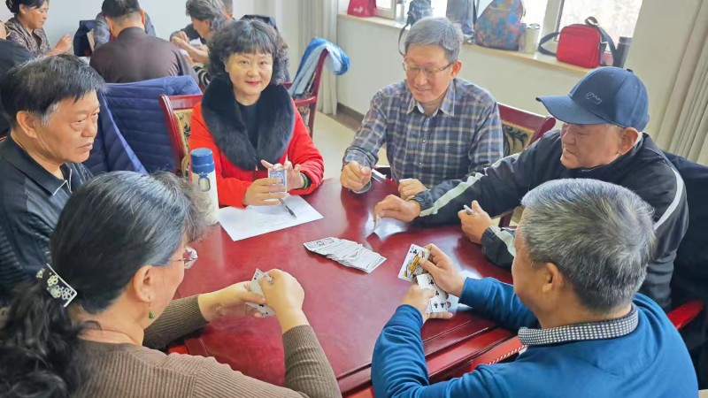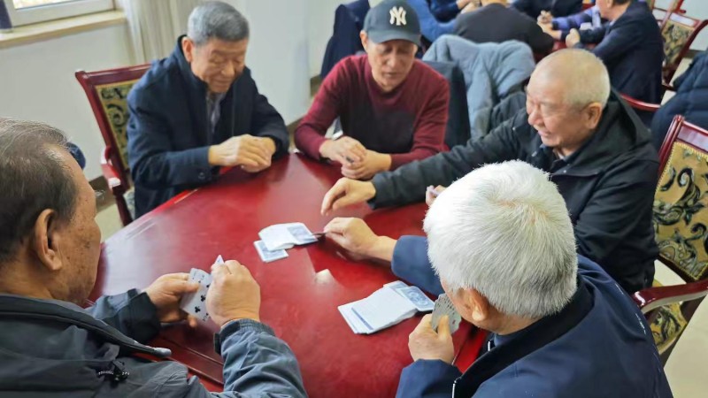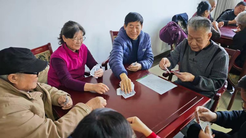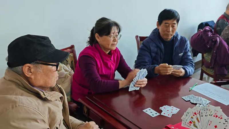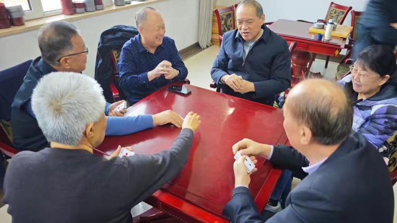 棋牌厅内瞬间热闹起来,却又井然有序。每一张牌桌前,老同志们围坐一堂,神情专注、沉着冷静,时而凝神思索、审慎出牌,时而低声交流、默契配合,时而会心一笑、从容应对。手中的扑克牌在他们指尖灵活流转,每一次出牌、每一次叫牌、每一次配合,都展现出老同志们精湛的牌技与敏锐的思维;每一场对决、每一次比拼,都充满了乐趣与温情,没有激烈的争执,只有友好的切磋,没有输赢的计较,只有相聚的欢愉。